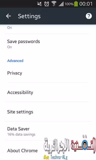 كما سبق و أن ذكرت إذا كنت من مستعملي الكروم فهذا الشرح سيفيدك كثيرا من ناحية توفير الإنترنت و بدون تطبيقات و لا برامج، بل فقط من الإعدادات، حيث ما عليك سوى التوجه إلى إعدادات متصفحك من خلال Settings :