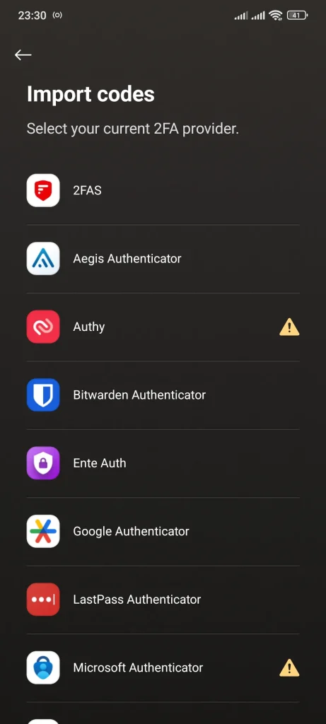 تدعم شاشة الاستيراد تطبيقات المصادقة الرئيسية، بما في ذلك Google Authenticator و Bitwarden Authenticator و LastPass Authenticator وغيرها الكثير. لقد اختبرت عمليات الاستيراد من كل من Google Authenticator و Bitwarden Authenticator، وعمل كلاهما دون أي مشاكل.