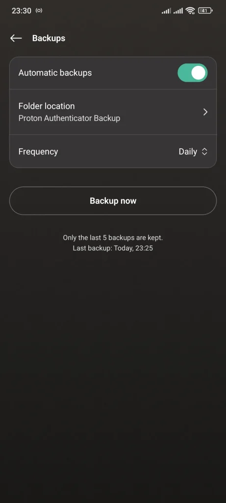 ومع ذلك، ستفقد المزايا الرئيسية التي يوفرها التطبيق، وهي المزامنة المشفرة والنسخ الاحتياطية التلقائية، وكلاهما يتطلب حساب Proton. بدون حساب، فأنت تستخدم بشكل أساسي تطبيق مصادقة يعمل محليًا فقط، مما يقلل من فائدته الحقيقية. فالمزامنة المشفرة تضمن بقاء رموز المصادقة الثنائية الخاصة بك آمنة ومتاحة عبر أجهزتك المختلفة، بينما تحميك النسخ الاحتياطية التلقائية من فقدان الوصول إلى حساباتك في حالة فقدان هاتفك أو تلفه.
