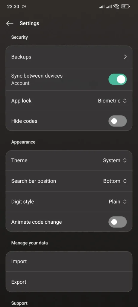 إذا كنت ترغب في إضافة رمز يدويًا، فإن الخوارزمية تدعم SHA1 و SHA256 و SHA512 لخوارزميات التجزئة المشفرة، بالإضافة إلى أنواع المصادقة كلمة المرور لمرة واحدة المُستندة إلى الوقت (TOTP) و STEAM. بالإضافة إلى ذلك، فإنه يوفر خيار تعديل طول الرمز بين ستة وثمانية أرقام واختيار الفاصل الزمني من 30 أو 60 ثانية. تساعد هذه المرونة عندما تستخدم الخدمات إعدادات غير قياسية.