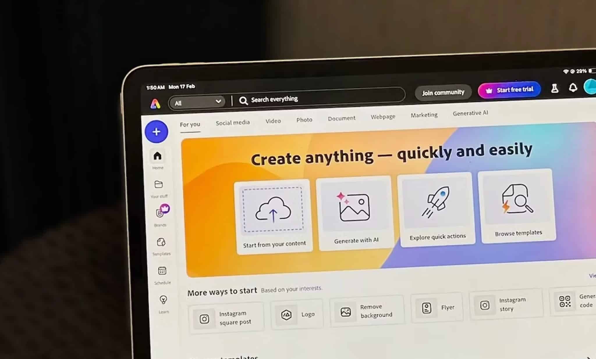 - إنشاء صور مدمج: أداة Firefly لتحويل النص إلى صورة موجودة داخل Express. يمكنك إنشاء صور مرئية على الفور بدلًا من البحث في مكتبات الصور أو استخدام أدوات الذكاء الاصطناعي المنفصلة.