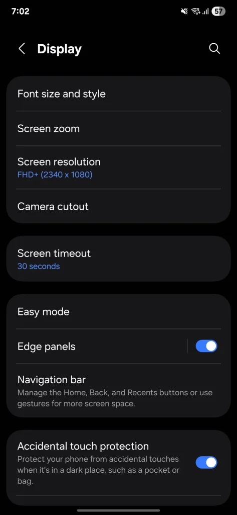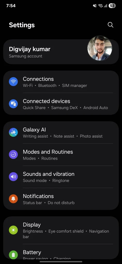 أول ما لاحظته عند الانتقال إلى هاتف Samsung هو شاشة العرض. بدت الشاشة حادة ومشرقة بالفعل، ولكن اكتشفت لاحقًا أنها لم تكن تعرض حتى أعلى دقة ممكنة. بشكل افتراضي، يقوم هاتف Galaxy الخاص بك بتقليل الدقة لتوفير طاقة البطارية.