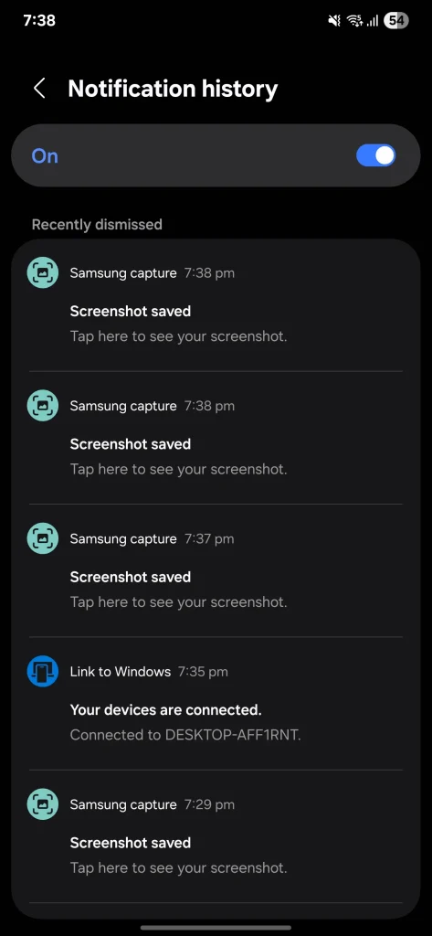 كم مرة قمت فيها بالتمرير السريع لإزالة إشعار بسرعة كبيرة ثم أمضيت الدقائق القليلة التالية أتساءل عما فاتني؟ مع تفعيل ميزة سجل الإشعارات (Notification History)، لن تكون هذه اللحظات مصدر قلق بعد الآن. يحتفظ الهاتف بسجل لمدة 24 ساعة للتنبيهات الخاصة بك، لذلك إذا قمت برفض شيء ما عن طريق الخطأ، يمكنك الرجوع والتحقق منه.