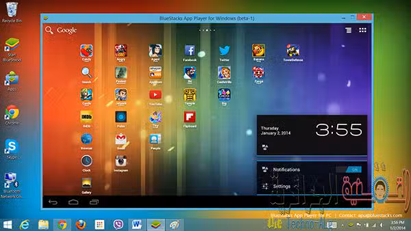 هذا هو واحد من البرامج الأكثر شعبية وهو يسمح لك بتشغيل العاب وتطبيقات الاندرويد على حاسوبك الخاص . الجميل انه يأتي بمتجر جوجل بلاي ويمكنك تتبيث ما تشاء من التطبيقات .
