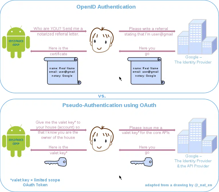 لا يعمل كل نظام على حاله ، ولكن العملية الأساسية عالمية إلى حد ما. تستخدم معظم خدمات تسجيل الدخول التابعة لجهات خارجية مجموعة من بروتوكولي OpenID و OAuth. تتعامل OpenID مع تفويض المستخدمين (يؤدي تسجيل الدخول إلى Facebook إلى تأكيد هويتك إلى الموقع الذي تحاول استخدامه) ، في حين يحكم OAuth كيف يمكن للمواقع الأخرى الوصول إلى بياناتك (الاسم ، العمر ، الاهتمامات ، الأصدقاء ، إلخ).