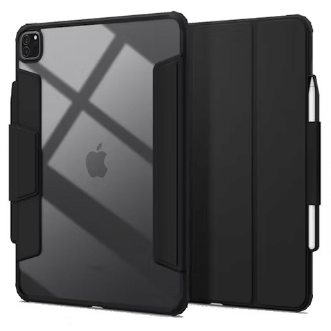 تُوفر هذه الحافظة المتينة حماية مُتعددة الطبقات ضد أضرار السقوط والصدمات، مع زوايا مُبطنة تُضيف تعزيزًا للإطار. كما تحتوي على أغطية للمنافذ لمنع دخول الغبار والأوساخ، ويُمكن تعديل الإطار نفسه في أربعة أوضاع مُختلفة: الصورة، والوسائط، والكتابة، والبث. مع مساحة تخزين مُدمجة لـ Apple Pencil، تُوفر هذه الحافظة الانسيابية والمتينة ميزاتها العملية وتصميمها الأنيق.