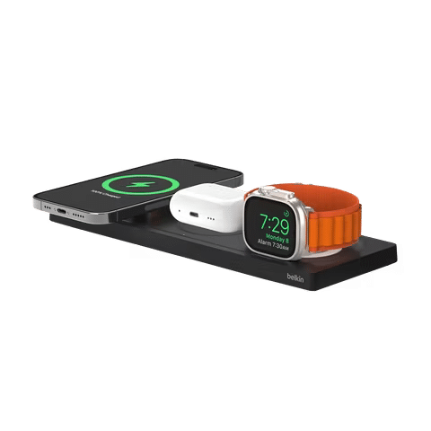 تُعد لوحة الشحن اللاسلكية Belkin BoostCharge PRO 3-In-1 المُزوَّدة بـ MagSafe خيارًا مُمتازًا لأولئك الذين يبحثون عن أفضل محطة شحن لمنتجات Apple. لقد تم تصميمها بدقة لشحن الـ iPhone و Apple Watch و AirPods في نفس الوقت دون أي فوضى في الكابلات، مما يجعلها مثاليةً للشحن على سطح المكتب أو بجانب السرير.