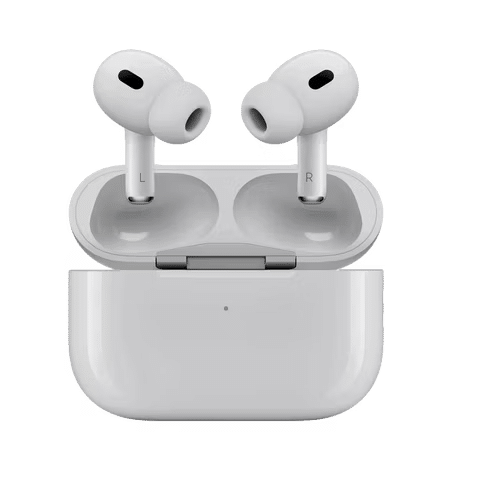 تُوفر سماعات الأذن Airpods Pro الجيل الثاني شريحة H2 وتتميز بنمط إلغاء الضجيج الفعَّال المُمتاز ونمط شفافية الصوت مع نمط الصوت التكيفي والتوعية بالمحادثة. كما أنها مُقاومة للغبار والعرق والماء وتأتي مع علبة شحن Magsafe USB-C.