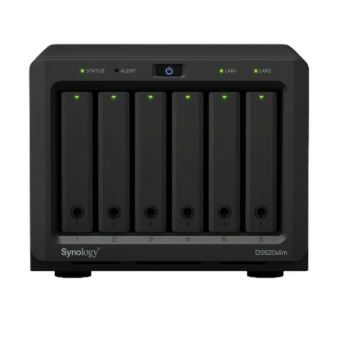 يُعد DiskStation DS620slim من Synology أحد حلول NAS المُدمجة وبأسعار معقولة نسبيًا والذي يُوفر ستة فتحات لمحركات الأقراص، مما يسمح لك بتجربة مستويات RAID مختلفة للعثور على التوازن الصحيح بين التكرار والسرعة والحماية.