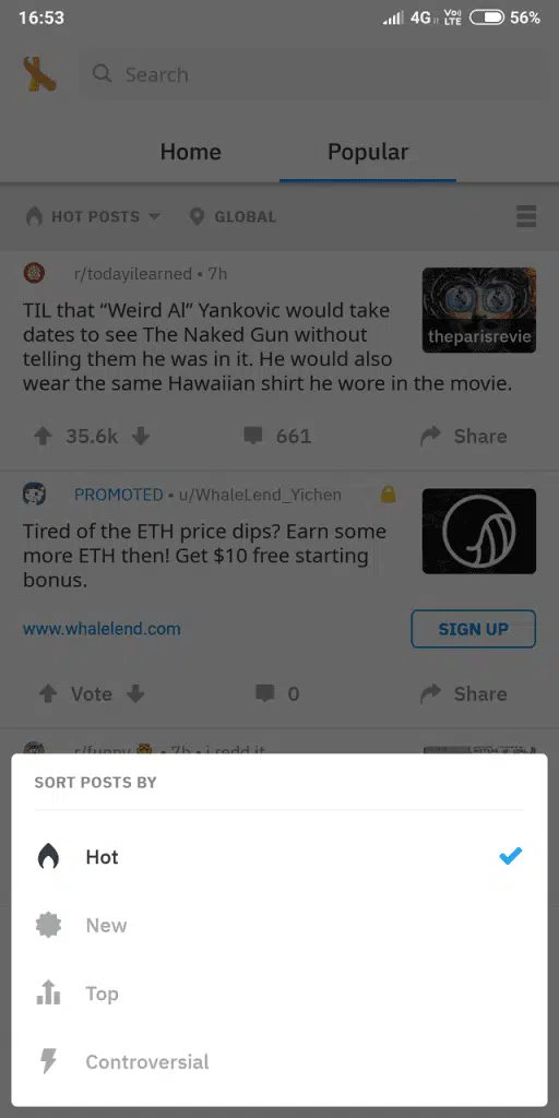 يمكنك إما اختيار الصفحة الرئيسية أو علامة التبويب الشائعة أو تصنيف المشاركات حسب المواضيع المثيرة للجدل والساخنة وغير ذلك. إذا كنت ترغب في إنشاء مشاركة جديدة ، فيمكنك القيام بذلك مع صورة ، نص ، فيديو ، وصيغة ارتباط. يمكن الوصول إلى جميع subreddits قمت بالاشتراك فيها بسهولة بنقرة زر واحدة. وأخيرًا ، توجد غرف الدردشة وقسم الإشعارات وعلامة تبويب الرسائل لتظل على علم بالأشخاص الذين يتعرضون لضغوط منكم عندما تكون في وضع عدم الاتصال.