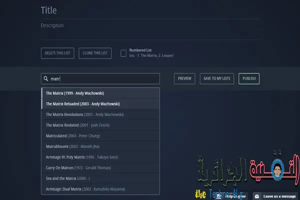 كما بامكانك عمل قائمة بالأفلام التي تود مشاهدتها لاحقا .. جميل أليس كذلك ؟ صراحة الموقع هو يعتبر بمثابة منصحة تعمل على ترتيب مشاهدتك للأفلام و الحصول على أفلام تستحق المشاهدة دون مخافة تضيع الوقت في أفلام لا تستحق.