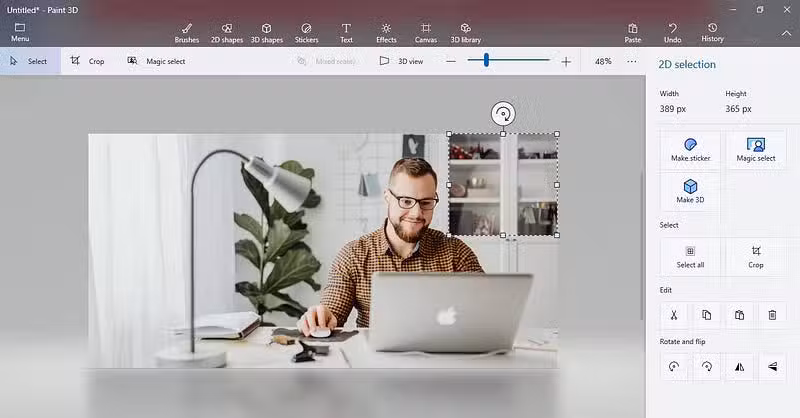 كيفية تعتيم صورة باستخدام أداة التحديد في Paint 3D