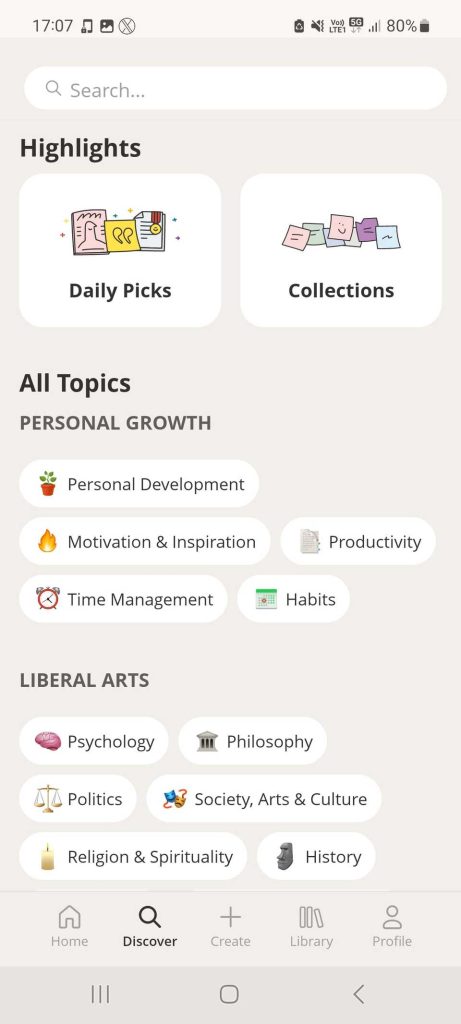 إنه أخف من الغوص في كتاب كامل، ولكنه يظل يلبي الرغبة في تعلم شيء جديد. يتيح لك التطبيق أيضًا حفظ الرؤى وتصنيفها، مما يجعلك تشعر وكأنه قاعدة معرفة شخصية يمكنك الرجوع إليها.