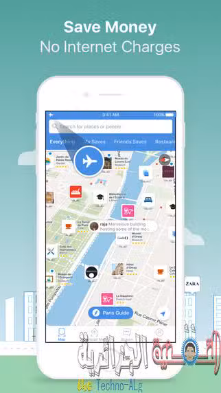 تطبيق Citymaps المتوفّر بشكل مجاني وكامل على نظامي تشغيل أندرويد و iOS يمكن الإستفادة منه كثيرًا في هذا المجال، حيث هو عبارة عن تطبيق يعرض لك أي مدنية في العالم وبشكل مفصل من شوارع وأماكن ,,إلخ دون الحاجة للإتصال بالإنترنت.