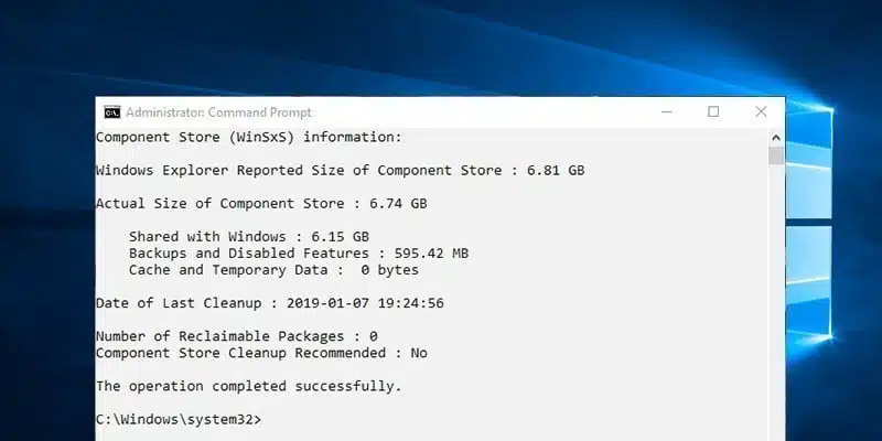 4. سوف يبدأ الإجراء أعلاه عملية التنظيف. قد يستغرق الأمر بعض الوقت لتنظيف مخزن المكونات. بمجرد القيام بذلك ، أغلق نافذة موجه الأوامر وأعد تشغيل النظام. في حالتي حرر التنظيف حوالي 3GB من المساحة التي كان يستهلكها النظام.