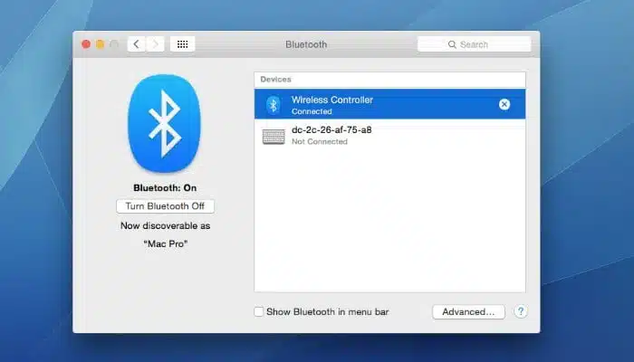 على جهاز Mac ، تحقق من لوحة الأجهزة في إعدادات Bluetooth. هذا هو المكان الذي ستظهر فيه وحدة التحكم DualShock 4 بمجرد أن يقوم جهاز Mac الخاص بك بالعثور على وحدة التحكم. سيظهر جهاز DualShock 4 كـ “جهاز تحكم لاسلكي”. انقر عليه لإقرانه. سيتوقف ضوء DualShock 4 عن الوميض والبقاء بلون خالص بمجرد إقرانه بنجاح بجهاز Mac.