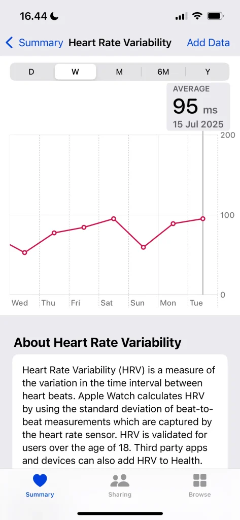يجب أن تكون على دراية بأن HRV قد يكون مضللاً بعض الشيء في بعض الأحيان، خاصةً عندما تمارس تمارين مكثفة. أنا أحب إبقاء وضع التمرين قيد التشغيل حتى أعود إلى المستوى الأساسي بعد التمرين، لأن هذا يسمح لي بتتبع ما يحدث بدقة أكبر. إذا نسيت تسجيل التمرين، فقد ألاحظ أيضًا تمثيلات غير دقيقة.