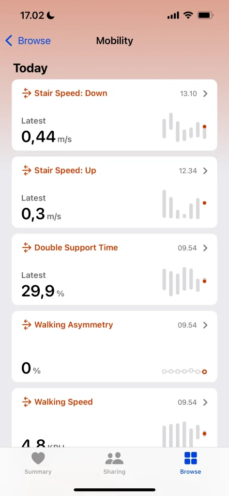 على الرغم من أنني لا أعتبر نفسي “كبيرًا في السن”، إلا أن بلوغي سن الثلاثين دفعني بالتأكيد إلى التفكير مليًا في جوانب صحتي المختلفة. أحد الجوانب التي سعيت جاهدًا لتحسينها بشكل خاص هو مستوى حركتي؛ ورغم أنني ما زلت بحاجة إلى بذل المزيد من الجهد، إلا أنني سعيد بالتقدم الذي أحرزته منذ أن بدأت. باستخدام ساعتي Apple Watch، يمكنني تتبع مجموعة متنوعة من إحصائيات الحركة في تطبيق “صحتي” (Health) ضمن قسم تصفح > الحركة، مثل: