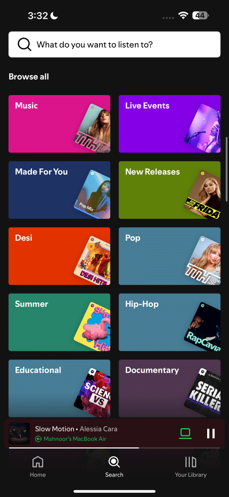 يمكنك العثور على جميع قوائم التشغيل التي ذكرتها أعلاه عن طريق البحث عنها بالاسم في متصفحك والنقر على أول رابط Spotify يظهر. بدلاً من ذلك، يمكنك العثور عليها في تطبيق Spotify عن طريق التبديل إلى علامة التبويب بحث في الأسفل، ثم النقر على مصممة لك ضمن عنوان تصفح الكل.
