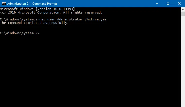 Enter: net user Administrator /Active:yeslogin-administrator-account