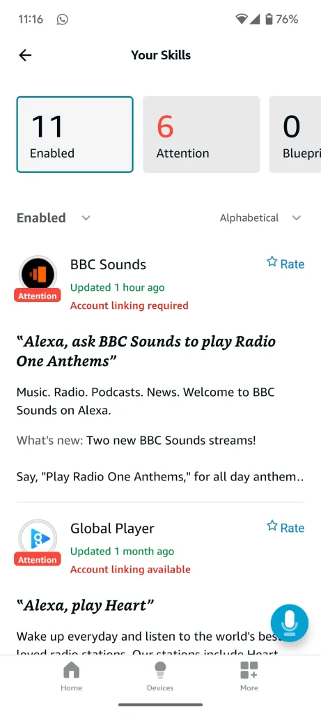 الخطوة التالية هي تعطيل أي من مهارات Alexa التي قمت بتمكينها مسبقًا. في حين أن بعض مهارات Alexa مفيدة للغاية (وهناك أيضًا بعض مهارات Alexa الغريبة بشكل واضح)، إذا لم تعد تستخدم واحدة أو أكثر منها، فمن الأفضل تعطيل المهارات لضمان عدم تسريب بيانات قيمة. يعتبر تعطيل مهارات Alexa غير المستخدمة خطوة أساسية في تحسين خصوصية وأمان بياناتك.