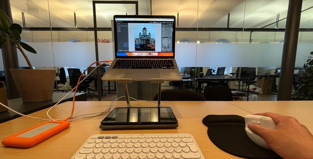 بينما أعمل جزئيًا من المنزل، أقضي أيضًا الكثير من الوقت في مساحة عمل مشتركة. لذلك، أرغب في إعداد محمول للعمل عن بُعد. لقد تجنبت شراء شاشة لهذا السبب، على الرغم من أنني منفتح لتغيير رأيي.