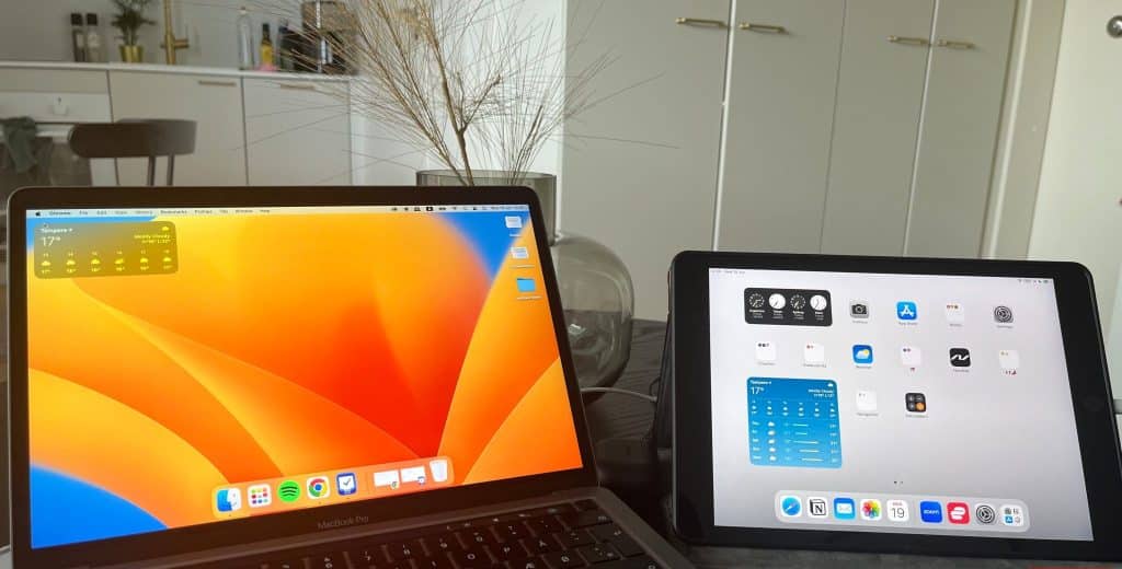 إن رغبتي في إعداد مساحة عمل محمولة من المنزل تعني أيضًا أنني تجنبت شراء شاشة خارجية لجهاز اللابتوب الخاص بي. ولحسن الحظ، يُعد الـ iPad خاصتي الشاشة الثانية المثالية (ويمكنني اصطحابه معي في كل مكان).