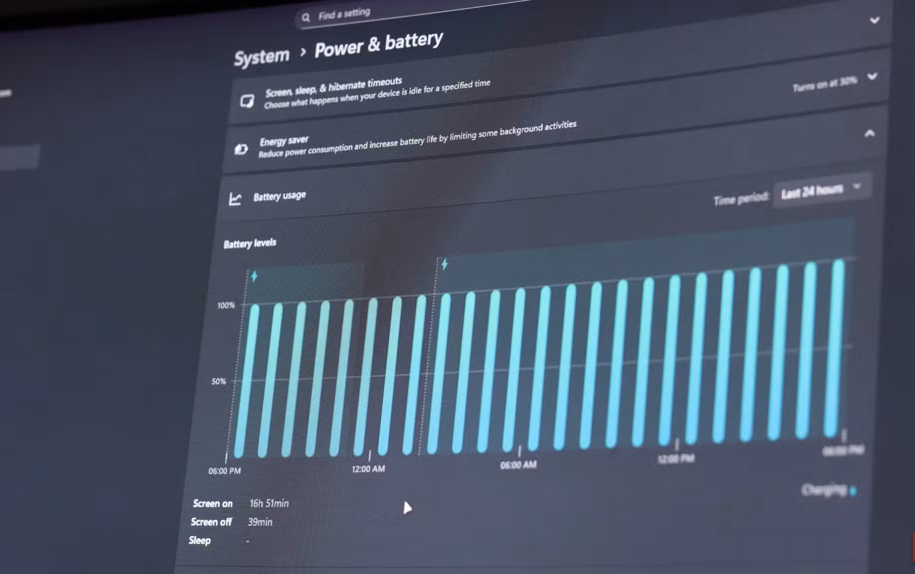 بالإضافة إلى أوضاع الطاقة، يتضمن نظام Windows إعدادات طاقة إضافية يمكن أن تساعدك في الحصول على أقصى استفادة من بطارية جهازك. يتضمن ذلك إعدادًا مفيدًا باسم “الشاشة والسكون” الذي يقوم بتعطيل شاشة الكمبيوتر المحمول بعد فترة محددة من عدم النشاط للمساعدة في توفير الطاقة. إليك كيفية إعداد ذلك: