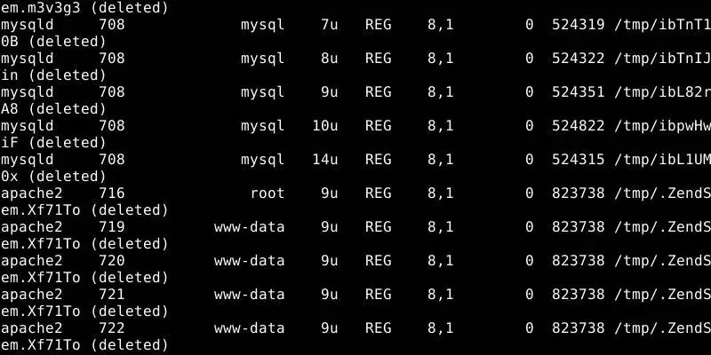 في بعض الأحيان، سيتم حذف الملف ، ولكن لا تزال العملية تستخدمه. لن يقوم Linux بنشر وحدة التخزين المرتبطة بالملف أثناء تشغيل العملية. تحتاج فقط للعثور على العملية وإعادة تشغيلها.