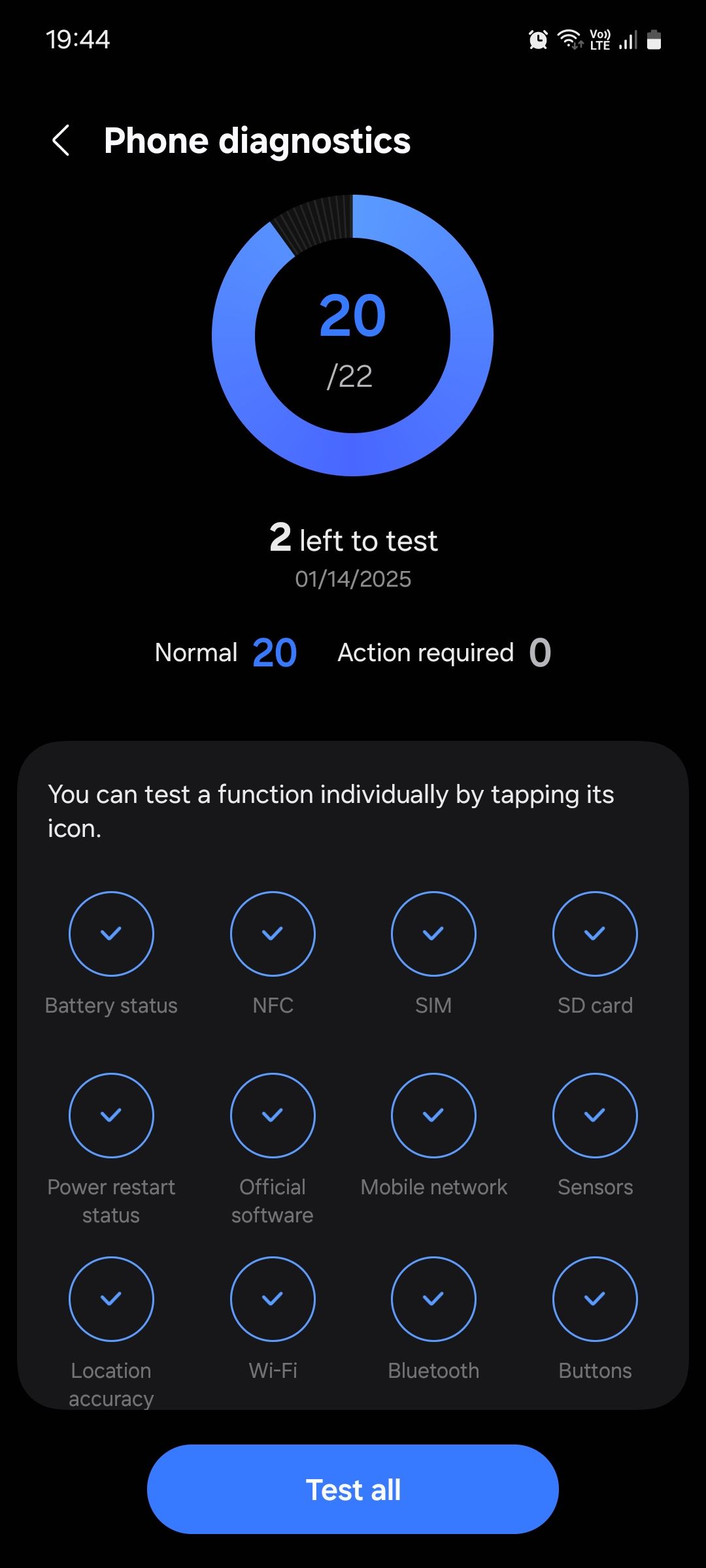 يُعد تشغيل اختبار تشخيصي كل 3 أشهر طريقة استباقية لضمان بقاء هاتف Samsung الخاص بك في حالة مثالية. هناك العديد من التطبيقات التي يمكن أن تساعدك في القيام بذلك. ومع ذلك، تأتي هذه الوظيفة مدمجة في هواتف Samsung. تساعد هذه الاختبارات في الكشف المبكر عن أي مشاكل في البطارية، الشاشة، الأداء، وغيرها.