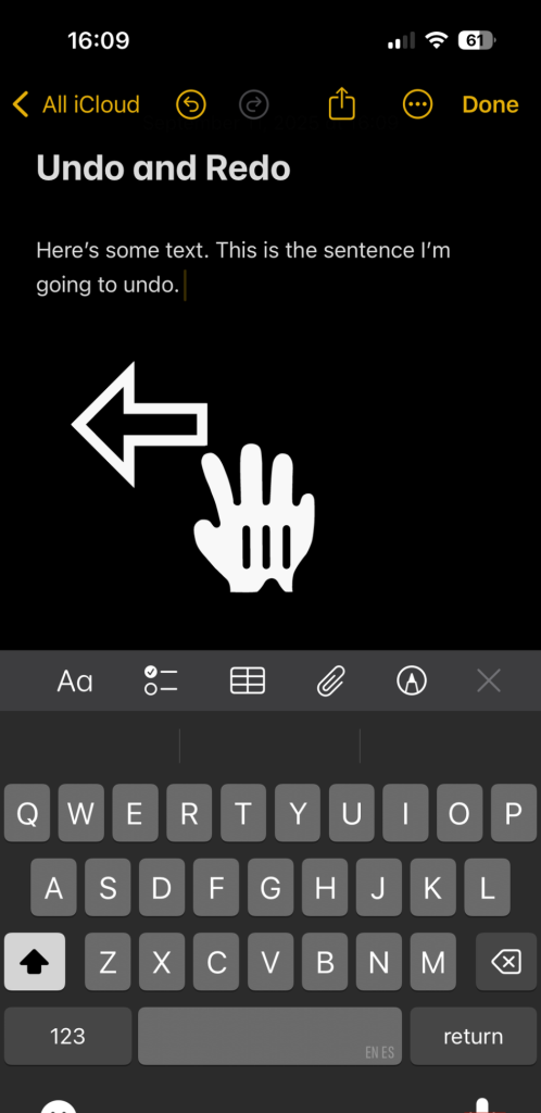 عادةً، هزّ جهاز الـ iPhone يؤدي إلى التراجع عن آخر إجراء قمت به. ولكن، لطالما وجدت هذه الطريقة غير موثوقة، بالإضافة إلى أنها ليست سهلة التنفيذ دائمًا. هناك طريقة أفضل للتراجع والإعادة باستخدام إيماءة سريعة.