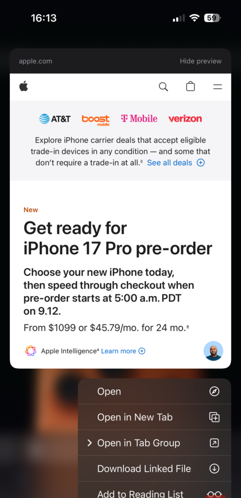 في العديد من التطبيقات، اضغط مع الاستمرار على رابط لفتح معاينة صغيرة له. يتيح لك هذا رؤية ما هو مرتبط دون فتح علامة تبويب جديدة أو تبديل التطبيقات.