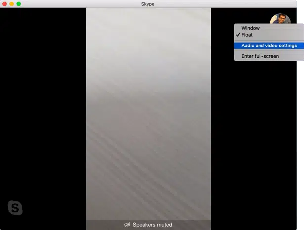 بعد أن تكون متصلاً ، مرّر مؤشر الماوس فوق الشاشة لإظهار رمز الإعدادات في أعلى اليمين وحدد إعدادات الصوت والفيديو.
