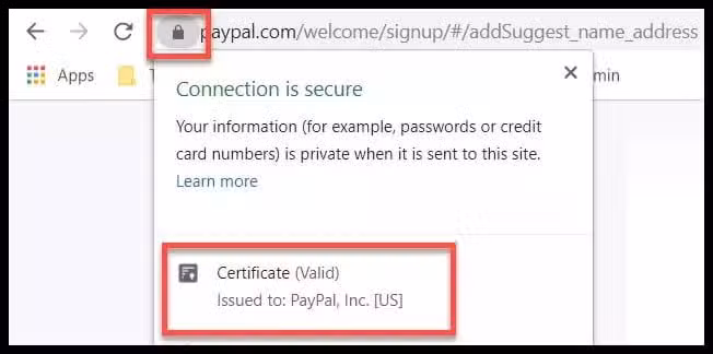 لا يزال بإمكانك التحقق من تفاصيل الشهادة ولكن ستحتاج إلى النقر فوق رمز القفل للحصول على مزيد من التفاصيل حول أمان الشهادة ونوعها.