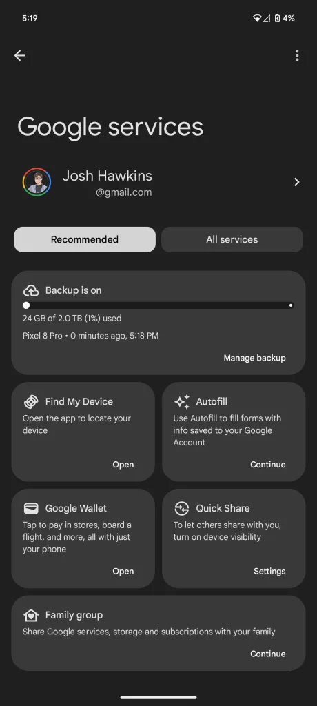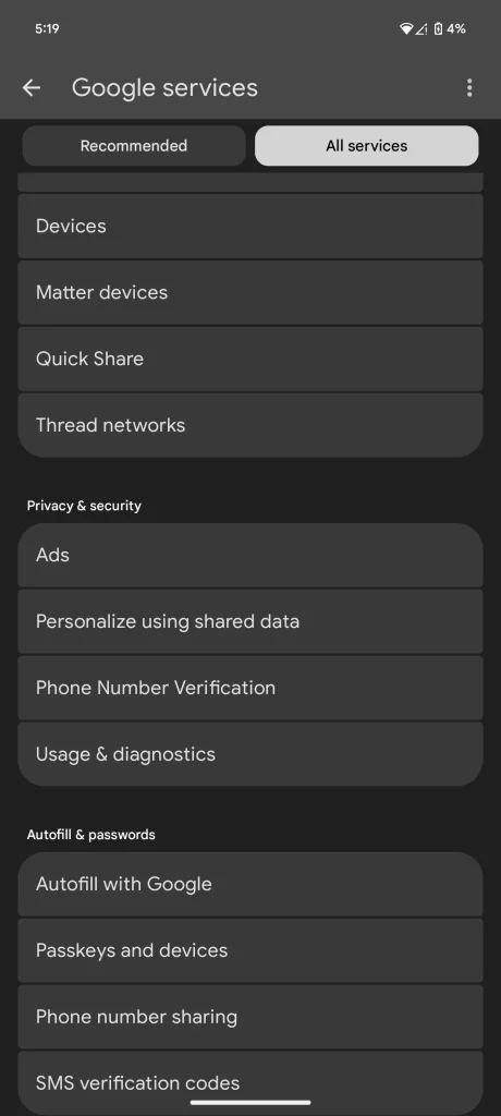الخيار الآخر الوحيد المتاح لك لمكافحة هذا الغزو لخصوصيتك هو التخفيف من الضرر الذي تسببه، حتى لو كان ذلك طفيفًا. أوصي دائمًا بالتوجه إلى الإعدادات > خدمات Google > جميع الخدمات > الإعلانات وإلغاء الاشتراك في خيارات الإعلانات المخصصة المدرجة هناك. هذا يقلل من “تتبع الإعلانات المخصصة”.