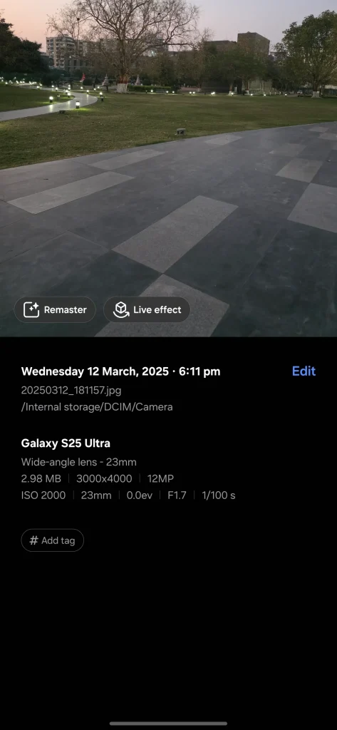 لاستخدام أداة “Remaster”، افتح الصورة التي تريد تحسينها في تطبيق “Samsung gallery”. ثم مرر سريعًا لأعلى على الصورة للكشف عن اقتراحات التعديل وحدد Remaster من القائمة العلوية.