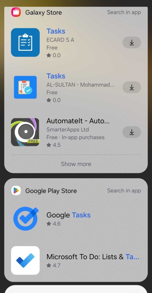 وينطبق الأمر نفسه على التطبيقات والأماكن. إذا كنت ترغب في تنزيل تطبيق معين من Play Store أو Galaxy Store، فاكتب اسمه، وسينقلك شريط البحث مباشرةً إلى صفحة هذا التطبيق. وبالمثل، يمكنك أيضًا البحث عن الاتجاهات أو بدء التنقل إلى الأماكن المحفوظة على الفور.
