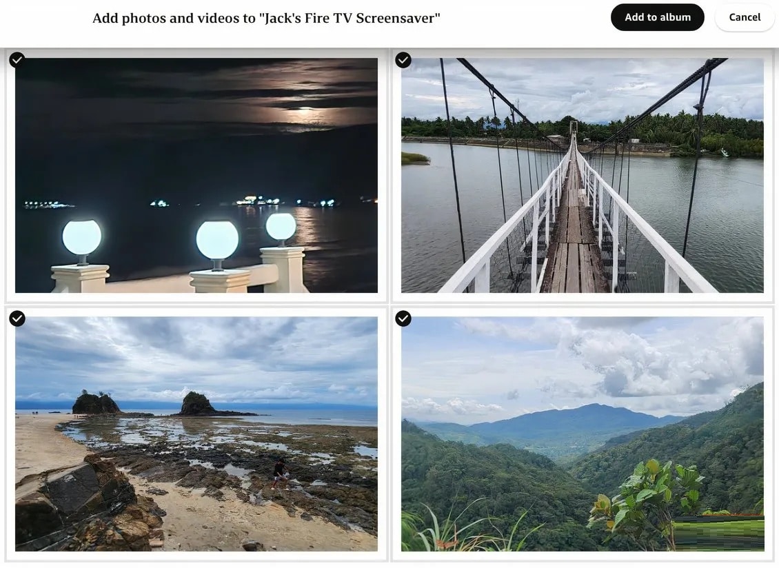 بمجرد تنزيل تطبيق Amazon Photos وتسجيل الدخول، كانت العملية سلسة للغاية. امنح تطبيق Amazon Photos الإذن للوصول إلى الصور الموجودة على جهازك، ثم انتقل إلى قسم الألبومات (Albums). ستجد ألبوم شاشة التوقف Fire TV Screensaver المخصص قد أُضيف تلقائيًا. من هنا، يمكنك إنشاء ألبومات إضافية، بالإضافة إلى إضافة الصور وتعديلها (بما في ذلك اقتصاصها لنسبة العرض إلى الارتفاع 16:9)، وإزالة الصور غير المرغوب فيها.