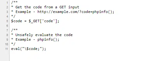 في المثال أعلاه ، تكون صفحة معلومات PHP عرضة وسيتم عرضها إذا كان عنوان URL http://example.com/؟code=phpinfo ()؛ يشتغل.