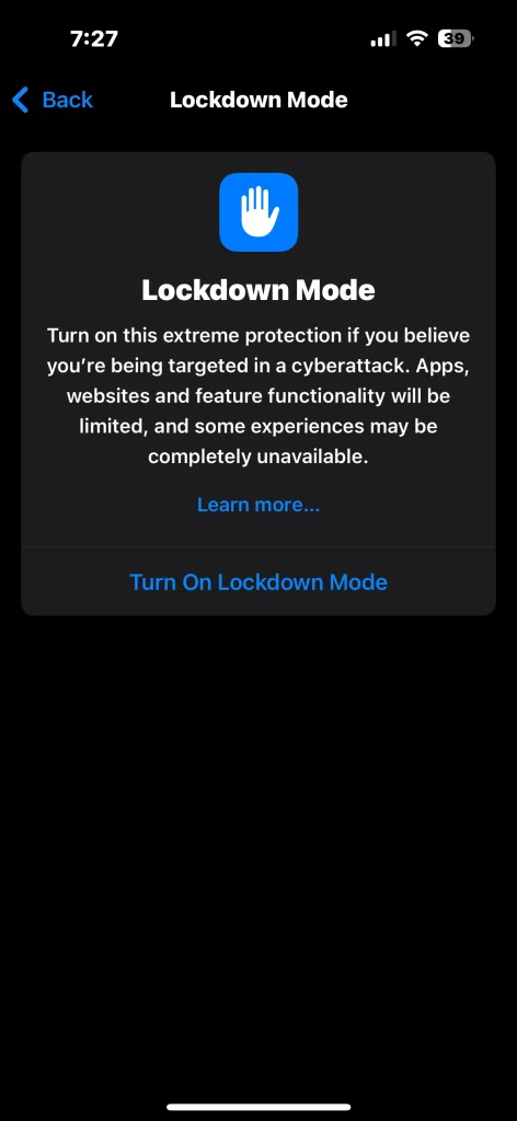 توفر معظم إعدادات iPhone حماية من المخاطر اليومية، ولكن نمط الإغلاق (Lockdown Mode) يذهب إلى أبعد من ذلك. تم تصميمه خصيصًا للأشخاص الذين قد يكونون أهدافًا لبرامج التجسس أو عمليات الاختراق المعقدة. أرى أن وجوده كخيار أمرًا ممتازًا لأنه يمنحني طبقة دفاع أقوى عندما أحتاج إليها.