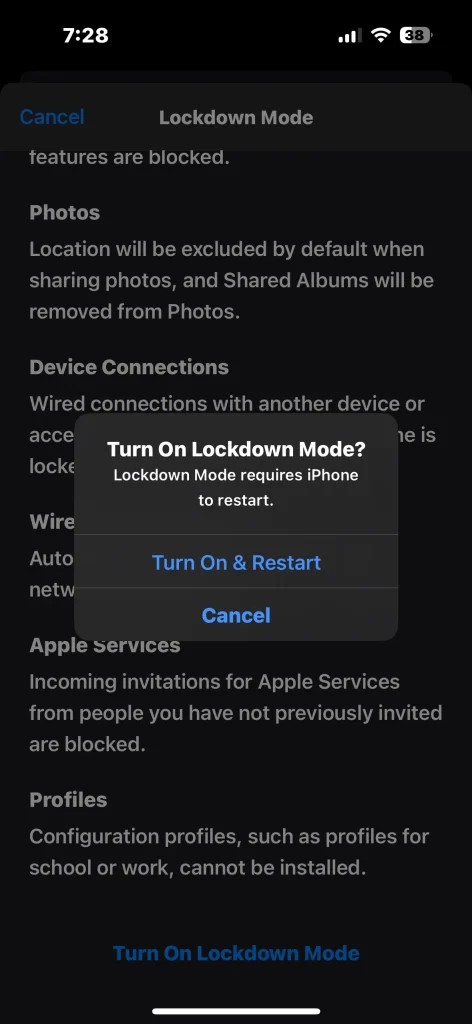 4. تفعيل نمط الإغلاق (Lockdown Mode)