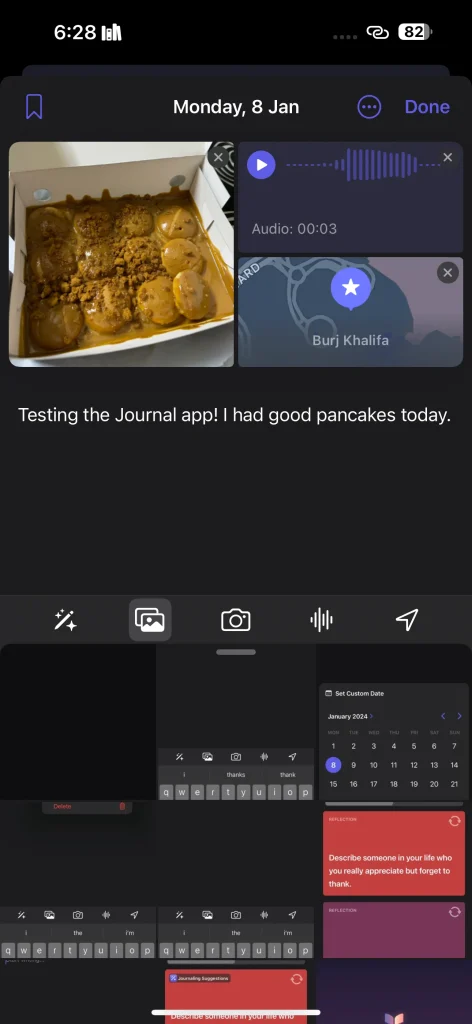 تطبيق Journal هو تطبيق مدمج من Apple مصمم لتسجيل الأفكار والذكريات والتأملات اليومية، ويعتبر بمثابة دفتر يوميات رقمي متكامل. يتيح لك التطبيق إضافة النصوص والصور، وحتى أبرز الأنشطة التي قمت بها، مما يسهل عليك توثيق يومك بشكل شامل. إحدى أفضل ميزات تطبيق Journal هي قدرته على اقتراح محتوى تلقائيًا من الصور وموقعك الجغرافي وبياناتك الصحية، مما يجعل إنشاء المدخلات اليومية أمرًا سريعًا وسهلًا للغاية. هذه الميزة الذكية توفر عليك الكثير من الوقت والجهد في تجميع أفكارك.