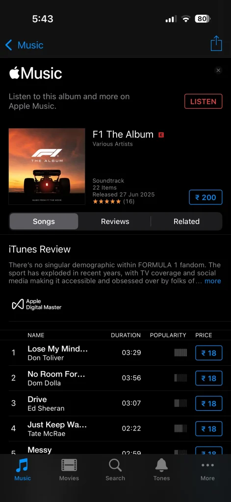 بصراحة، ما زلت أستغرب وجود متجر iTunes ضمن تطبيقات iPhone الأساسية. لمن لا يعرفه، هو المكان الذي يمكنك من خلاله شراء الموسيقى والأفلام والبرامج التلفزيونية بشكل فردي. المتجر يعمل بشكل جيد، لكنه يعطي انطباعًا بأنه ينتمي إلى حقبة أخرى. لنسأل أنفسنا بصدق: متى كانت آخر مرة اشتريت فيها ألبومًا أو فيلمًا بدلاً من مشاهدته عبر خدمات البث؟