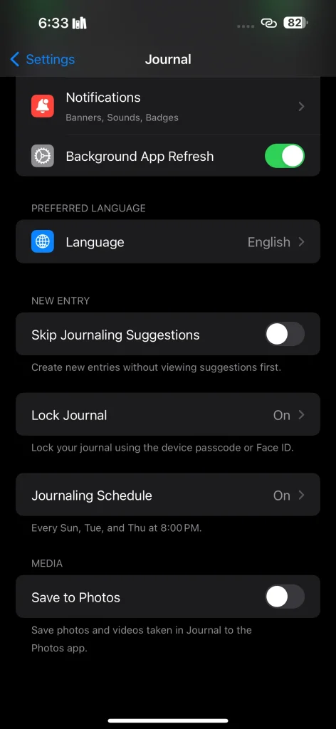 على الرغم من ذلك، تدوين اليوميات ليس من بين اهتماماتي الشخصية. إذا كنت تشاركني نفس الرأي، أو إذا كان لديك بالفعل تطبيق آخر لإدارة ملاحظاتك وتأملاتك، فإن تطبيق Journal قد لا يقدم لك الكثير من الميزات الإضافية. في هذه الحالة، يمكنك حذفه بأمان لتحرير بعض المساحة على جهاز iPhone الخاص بك، واستغلالها في تطبيقات أخرى أكثر فائدة لك.