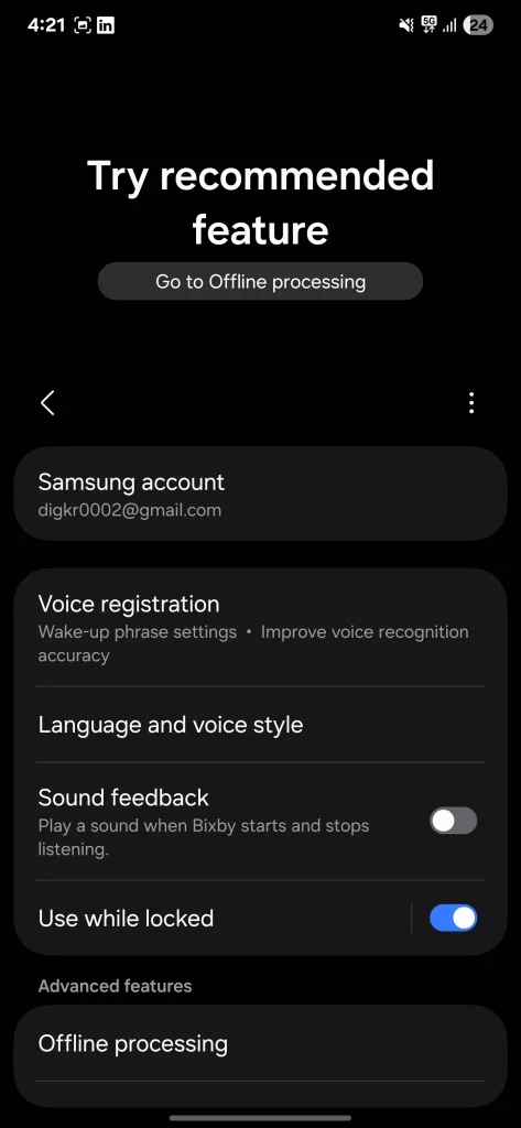 بصفتي مستخدمًا غير متمرس لـ Bixby، لم أكن أدرك أنه يستمع باستمرار وينتظر أمر التفعيل الصوتي Hi, Bixby. هذا يعني أن الميكروفون يظل قيد التشغيل، وتستمر العمليات في الخلفية بالعمل، مما يستنزف البطارية بمرور الوقت. يعتبر تعطيل هذه الميزة خطوة مهمة لتحسين عمر البطارية، خاصة إذا كنت لا تستخدم Bixby بشكل متكرر.