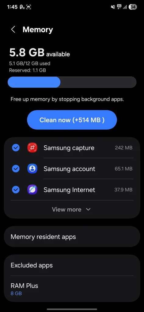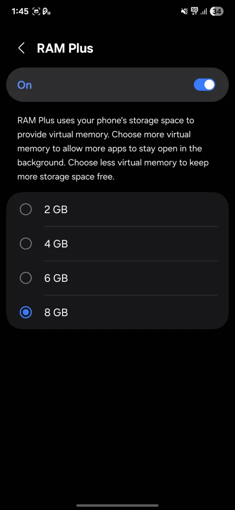 خاصية RAM Plus تبدو للوهلة الأولى كأداة لتحسين أداء هواتف Samsung، حيث تدّعي الشركة أنها تستخدم جزءًا من مساحة التخزين الداخلية كذاكرة وصول عشوائي (RAM) افتراضية، بهدف تعزيز القدرة على تشغيل تطبيقات متعددة في وقت واحد بكفاءة. ولكن، في الواقع العملي، وبالنسبة لمعظم المستخدمين الذين لا يقومون بتشغيل عدد كبير من التطبيقات في نفس الوقت، قد لا تكون هذه الخاصية مفيدة. بل على العكس، قد تستهلك مساحة تخزين إضافية وتزيد من العمليات التي تعمل في الخلفية، مما يؤدي إلى استنزاف البطارية بشكل أسرع.