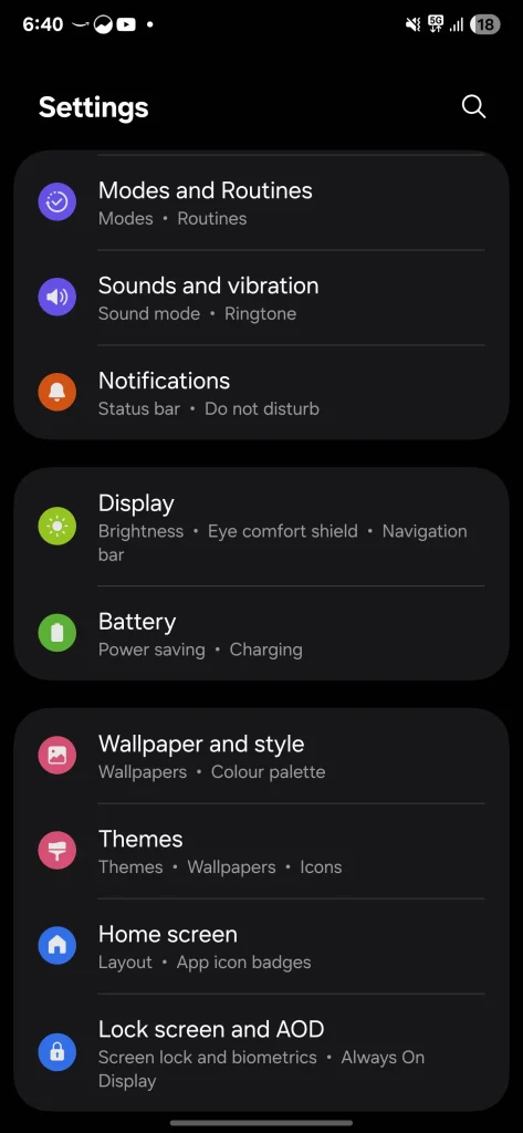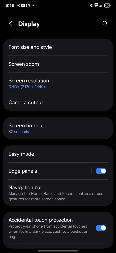 تعمل ميزة Always-On Display على إبقاء جزء من شاشة هاتفك مضيئًا – مع إبقاء المعالج في حالة نشاط طفيفة – لعرض الساعة، والإشعارات، وحالة البطارية. هذه الميزة مفيدة إذا كنت تلقي نظرة خاطفة باستمرار على هاتفك وهو موضوع على مكتبك أو ما شابه. ولكن بالنسبة لي، لم يكن هذا الاستنزاف المستمر يستحق ذلك، لذلك قررت إيقاف تشغيلها.