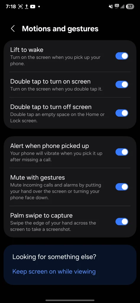 تتيح لك خاصية “الرفع للتنبيه” (Lift to Wake) تشغيل شاشة هاتفك تلقائيًا بمجرد رفعه. توفر هذه الخاصية سهولة كبيرة، حيث لا تضطر إلى الضغط على أي أزرار للتحقق من الوقت أو الاطلاع على الإشعارات الواردة.