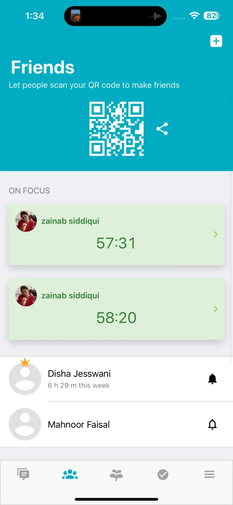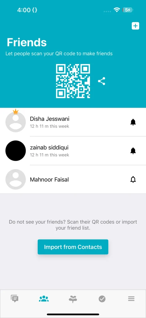 بمجرد إضافة أصدقائك، يمكنك معرفة عدد الساعات التي ركزوا فيها أيضًا. رؤية أن أصدقائي قد درسوا أكثر مني في بعض الأحيان هو كل ما أحتاجه من حافز للتركيز والاجتهاد حقًا! هذه الميزة التنافسية تجعل أكثر متعة وفعالية.