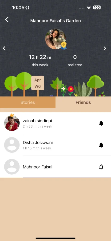 هنا يأتي دور Flora. فهو يتيح لي الجمع بين أفضل ما في العالمين: الحصول على المساءلة للدراسة جنبًا إلى جنب مع الآخرين مع الحفاظ على التركيز الكامل. تمامًا كما يمكنني زراعة الأشجار عندما أدرس بمفردي، يمكنني أيضًا إضافة أصدقاء إلى التطبيق، ويمكننا بشكل جماعي زراعة الأشجار والتركيز.